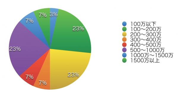 その中でも200万円との回答が目立ちました。1000万円以上と回答した方は合計で4名。うち2名が1500万円で最高金額でした。