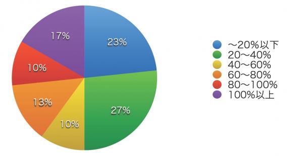 慰謝料の金額と、支払った(ている)男性の個人年収とを比較してみたところ、大体が年収の20%~40%の金額となっている事がわかりました。特に多かったのが20%と30%で同数。100%以上と答えた方の最高値は170%、年収850万の方で1500万円を支払った方でした。
