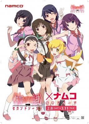 株式会社ナムコ(本社:東京都大田区)は、西尾維新氏の大人気小説<物語>シリーズ(講談社BOX刊)を原作とするアニメ「<物語>シリーズセカンドシーズン」とタイアップし、全国直営アミューズメント約100店舗で、2014年2月8日(土)から3月11日(火)まで「<物語>シリーズセカンドシーズン×ナムコ」キャンペーンを開催します。