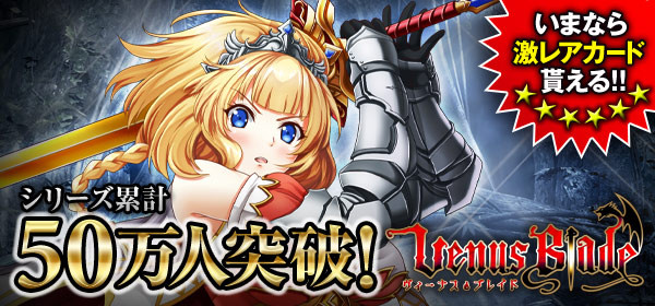 ゲーム概要:会員数50万人を突破したエディアの人気RPGゲーム『ヴィーナス†ブレイド』。擬人化されたエクスカリバーや天叢雲などの伝説の武器を連れ、世界一の「召剣師(ソードサマナー)」を目指し、アリスと共に旅に出よう!