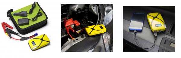 コンパクトサイズで、普段カバンの中へ入れ、持ち運びできますし、車のダッシュボードにも簡単に収納できます。万一車のバッテリーが上がった際には、この一台で車のエンジンを起動可能です。(排気量が3000CC以下の12V専用車種に限定)