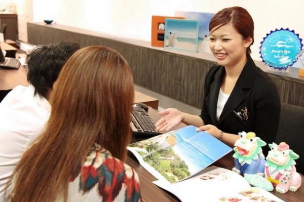青山店のサロンでは旅行会社クレオトラベルのスタッフが、お客様の条件に合った