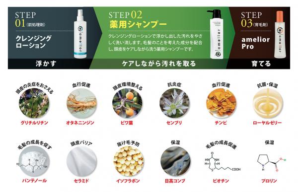 今回発売されたアメリオールシャンプー(http://www.armada-style.com/amelior_shampoo/)は、毎日のシャンプーで弱ってしまった頭皮をケアすることに重点を置き開発されました。血行促進や頭皮に潤いを与える厳選された12種類の美容成分を配合し、衰えた頭皮を健やかな状態へと導き、髪のハリ・コシやボリューム不足といった悩みに効果的にアプローチします。また、アメリオールシャンプーの発売により、既存のライン商品との組み合わせによる3ステップが完成し、それぞれの悩みに応じたケアをしていただけるようになりました。