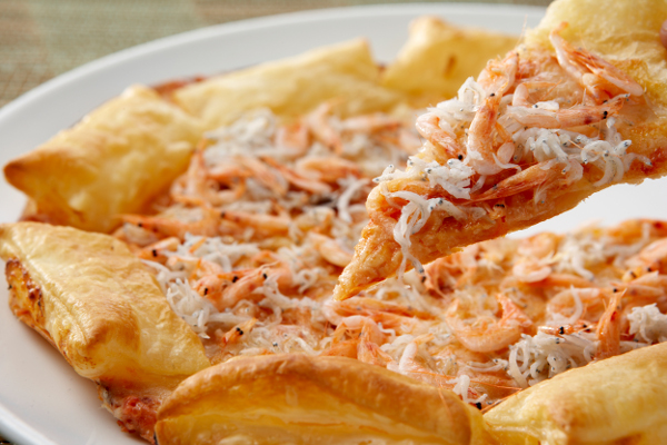富士山の恵みをたっぷり受けて育った「しらす」と「桜えび」。その海の香りと甘さを存分に楽しむために、耳がサクサクのパイ生地ととろ~りチーズの上にのせて焼き上げました。桜えびの香りとしらすの塩気が絶妙なピッツァの完成です。