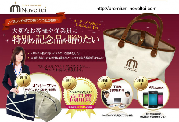 日本コンピューター・システム株式会社(本社:大阪市中央区、代表取締役社長:松木 謙吾、以下「NCS」)は、2014年2月3日(月)、周年記念や大きな行事を迎える企業や団体などを主な対象に、記念品や高級ノベルティの販売を目的としたバッグ類オーダーメイドB2Bウェブサイト『プレミアムNoveltei』(http://premium-noveltei.com/)を開店いたしました。