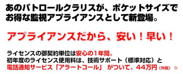 株式会社コムスクエア(東京都中央区、代表取締役社長:上嶌 靖 以下コムスクエア)は、高性能エージェントレス型サーバ・ネットワーク統合運用監視ソフトウェア「パトロールクラリス(PATROLCLARICE)」の機能を、運用現場における特定の用途に限定した「ポケット パトロールクラリス シリーズ」の第二弾として「ログ監視向けアプライアンス」を本日より販売開始をいたしました。