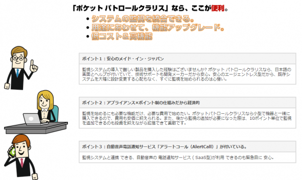 監視サーバ、サポート、電話通報もついて月々2万円からの低価格 ※初期費用は別途