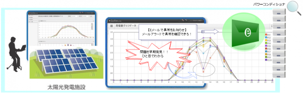 エナビジョンは、固定価格買取制度(全量買取制度)にて、機器のトラフ゛ル等による売電損失を最小限に抑えるために、お客様の発電状況を365日24時間遠隔で監視できるシステムです。