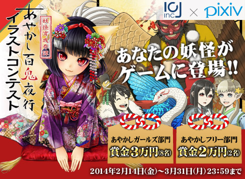 株式会社GNTのグループ会社であり、音楽配信事業・スマートフォンアプリを提供する株式会社GNTのグループ会社であり、音楽配信事業・スマートフォンアプリを提供する株式会社ICJ(本社:東京都渋谷区、代表取締役:ホー・トゥン・ラム、http://icj.jp/、以下ICJ)はイラストコミュニケーションサービスpixiv (ピクシブ)にてあやかし百鬼夜行のイラストコンテストを2月14日より開始開催いたししましたます。