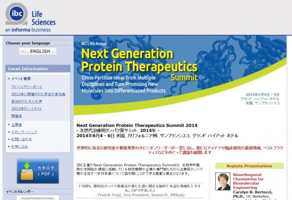 学会:「Next Generation Protein Therapeutics Summit 2014-次世代治療用タンパク質サミット」