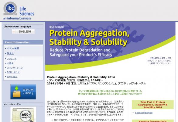 株式会社グローバル インフォメーションでは、皆様の利便性を図る為に、日本語、韓国語、中国語で「Protein Aggregation, Stability & Solubility 2014- タンパク質凝集、安定性、溶解性学会 2014年」の情報を提供するとともに、学会の参加のお申し込みを承っております。