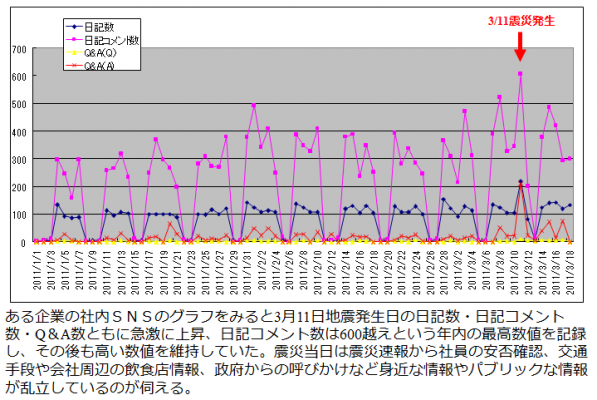 村井: 特にこの十年で日本も様変わりして人材の流動化と働き方の多様化が進んでいます。専門性の高い職人型ビジネスを提供している企業であればあるほど、ナレッジの共有が重要課題にあがっています。次に大企業の2チャンネル誹謗中傷書き込み問題ではエンタプライズソーシャルを導入してから今まで内部の人でしか知りえないような情報の書き込みなくなったという声も伺っています。また、東日本大震災のときにはソーシャルのツールを使って地球の反対側の人たちが被災地支援を行ったように、人間はコミュニケーションが取れれば、距離が縮み、相手に共感する為、国家間の争いごとも軽減していくのです。社内SNSは東日本大震災の時に多くの企業で安否確認、被災地支援、在宅作業などで使われ、社内SNSを使って危機を乗り越えていく企業や危機への備えをする企業が沢山現れました。それまでに稟議が通らず導入を見送っていた企業からはその後、「あの時、社内SNSを入れておけばよかった。」という声も多くいただきました。東日本大震災に電力会社各社がエンタープライズソーシャルのようなリアルタイムで情報が共有できる社内電脳ネットワークを導入していれば、決断も早く、国家規模での被害が縮小できただろうにと感じることもあります。