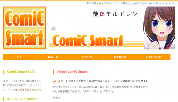 スマートフォン「だから」読みやすい、スマートフォン専用の電子コミックサイト! 本サイトのコミックは全て無料で読めます。大人気の「徒然チルドレン」や「行方不明さん」など100作品以上が掲載されております。http://www.comic-smart.com/