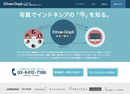 「エスノグラフ」は、インドネシアの市場や消費者の実態を写真で手軽に素早く知ることができるオンライン調査サービスです。インドネシアに住む様々な世代、職業、宗教の“顔の見える”モニターが写真とアンケートの回答をアップします。気になる写真や回答があれば、モニターに対し、チャットでインタビューすることもできるので、より深い市場や消費者実態、消費者ニーズの調査が可能です。