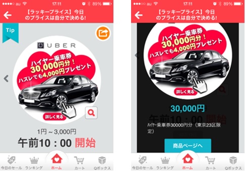 今回のコラボレーションでは、Qoo10が実施している【最低オンリーワン価格】を入札した方が落札できるオークション【ラッキープライス】で実施、一名の方にUBERご利用特典30,000円分と、応募者にもれなく4,000円まで無料でご乗車いただけるクーポンを差し上げます。(*応募者全員プレゼントは、UBER に初めてご乗車いただく方が対象となります。)