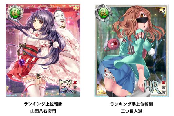 『三眼、罷り通る』は、期間限定で現れる敵を倒し、付与されたポイント数を競うイベントです。ポイント獲得数のランキング上位者には、このイベントでしか手に入らない限定EXカードを報酬としてプレゼントいたします。