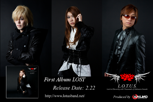 L.O.T.U.S.「Lost in Obscurity with Thousands of Unknown Sounds」、暗闇に失われた、未知の音達。重低音リズム隊に麻由のやさしい歌声。HEAVYなサウンドの中にもPOPさを忘れない世界を奏でます。