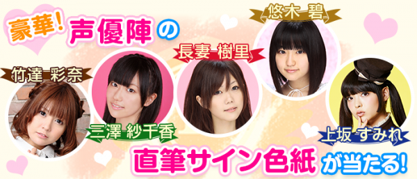 キャンペーン第一弾では神楽坂舞役・悠木碧さんと清澄セイラ役・上坂すみれさんの直筆サイン色紙を各2名様に、Google Playギフトカード3000円分とApp Storeギフトカード3000円分を各5名様にプレゼントします。