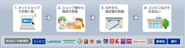 「NP後払い」はネットプロテクションズが提供する未回収リスク保証型の後払い決済サービスです。購入者はネットやカタログなどで買い物をし、商品の受取り後に中身を確認した上で、別送または商品に同梱されて届く払込票を利用して最寄りのコンビニエンスストア、銀行、郵便局で支払うことができます。実稼動加盟店は10,000社、累計ユーザー数は3,000万人を超えています。