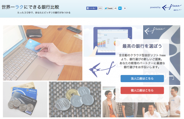 世界一ラクにできる銀行比較:http://banks.freee.co.jp/