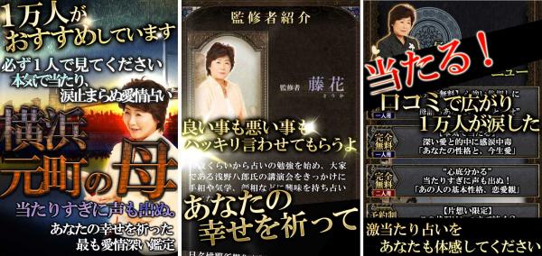 ・アプリ名称:『横浜人気占い1位◆想像絶する的中力「横浜元町の母」藤花』