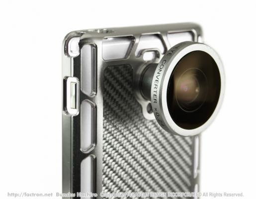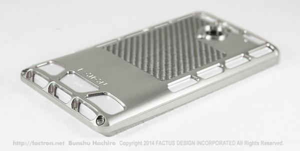 ジュラルミン(アルミ合金)の塊から丁寧に削り出したジャケットに、リアルカーボンファイバーのバックパネル付き。