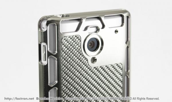 ジュラルミン(アルミ合金)の塊から丁寧に削り出したジャケットに、リアルカーボンファイバーのバックパネル付き。