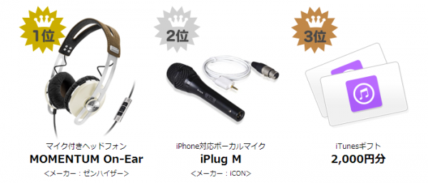 得票数の1位から3位まで、下記のような入賞賞品を贈呈します