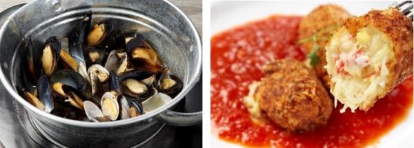 (左) ムール貝とアサリの白ワイン蒸し(ハーブガーリックバター) 1,480円(税込)