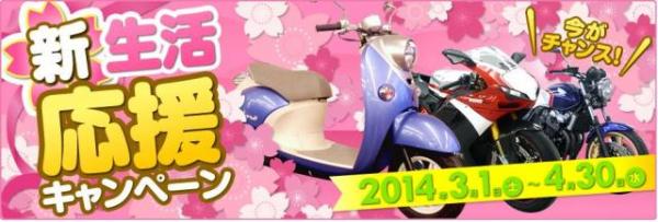 バイク買取専門店「バイク王」を全国展開する株式会社バイク王&カンパニー(代表取締役社長: 石川秋彦、本社: 東京都港区、証券コード: 3377、以下「当社」) が運営するバイクショップ「バイク王ダイレクトSHOP」は、2014年3月1日(土) から4月30日(水) までの期間、「新生活応援キャンペーン」を実施します。
