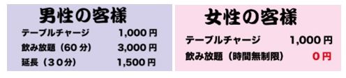 3月4日~3月末まで0円(テーブルチャージ料)女性グループはフード一品サービス