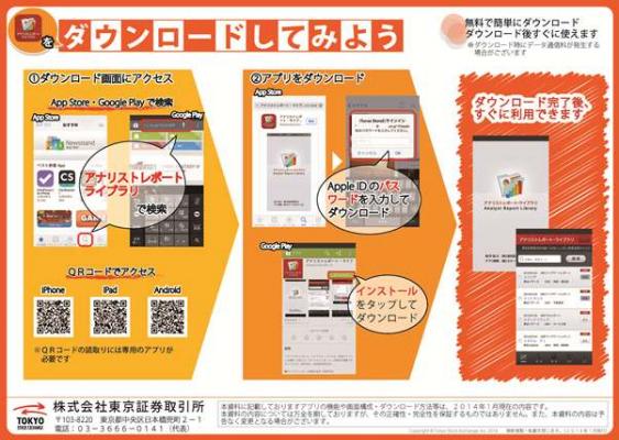 株式会社東京証券取引所では、投資者の皆様がアナリストレポートをより手軽にご利用いただくことを目的として、スマートフォン・タブレット端末向けのアナリストレポート閲覧アプリ「アナリストレポート・ライブラリ」(開発/運用:株式会社ステークホルダーコム)を通じてレポートを無料(通信料別途)で提供しております。