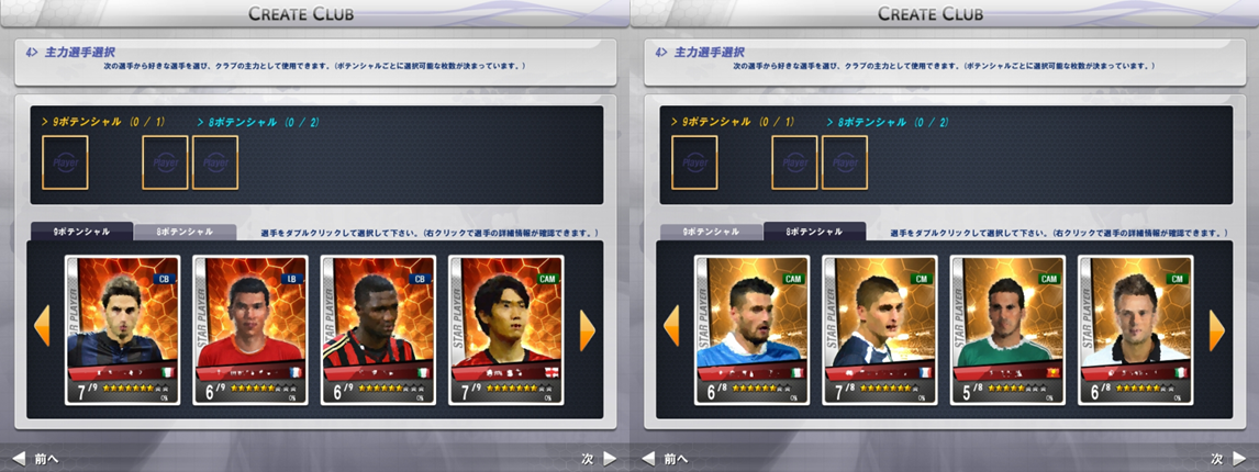 選手カードは、ランク1から9までありますが、めったに入手することのできないランク9と8選手を、チーム作成時に引き入れることができます。攻撃的なチームにしたいのか、守備的なチームにしたいのかを考えて、中心にしたい選手を選ぼう。