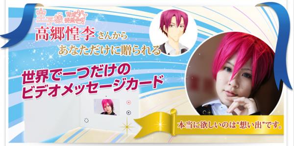 今回は男装ユニット『王子様育成委員会』のメンバーの一条古貴さん(http://www.vi-me-ca.com/prince_style/ichijyou_kouki/)、天使総志さん(http://www.vi-me-ca.com/prince_style/amatuka_soushi/)、藤代灰次さん(http://www.vi-me-ca.com/prince_style/fujishiro_haiji/)、鬼頭龍明さん(http://www.vi-me-ca.com/prince_style/kitou_ryumei/)、高郷惶李さん(http://www.vi-me-ca.com/prince_style/takasato_kouri/)、橘悠仁さん(http://www.vi-me-ca.com/prince_style/tachibana_yuujin/)が、ファンのために贈るリクエスト動画+手書きメッセージサービスを2月19日に開始しました。タレントの各ページの注文フォームからメッセージ内容をリクエストすると、そのメッセージが録画されたビデオメッセージカード「ViMeCa」が手元に届きます。今後は、参加するプロダクションを増やしていく予定です。