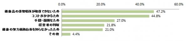 未実施の理由1位は「備品の備蓄場所確保」47.2%、2位は「コスト」44.8%