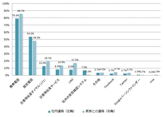◆災害時の社内の連絡手段「携帯電話」が最多の79.3%、2位は「固定電話」54.0%