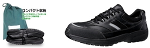 踏抜き防止板を内装し、長時間の徒歩にも対応するために軽量化を実現させた「防災シューズ」も取り扱っています。