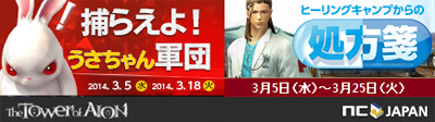 PC向けオンラインゲーム『The Tower of AION(以下、タワー オブ アイオン)』をサービス、運営するエヌ・シー・ジャパン株式会社(東京都渋谷区、代表取締役:金 澤憲(キム テクホン))は2014年3月5日(水)定期メンテナンス終了後からイベントを2つ実施いたします。