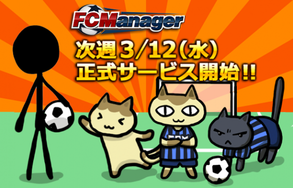 ついに正式サービスの開始が決定しました。次週水曜日、3月12日です。すでに「ウォーミングUP↑」に参加している方、正式サービスを待っていた方はもちろん、『FCマネージャー』を初めて知った方も、是非、正式サービスにお越し下さい。構えることなく気楽に遊べるサッカーゲームですので、安心してご参加ください。正式サービス開始時にもらえる、オープンβテスト(「ウォーミングUP↑」)参加特典をアップしてお待ちしています。