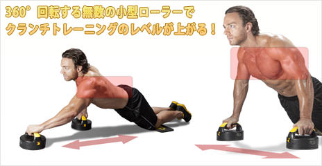 360°回転する2つのグリップ付きローラーが上半身を刺激!!
