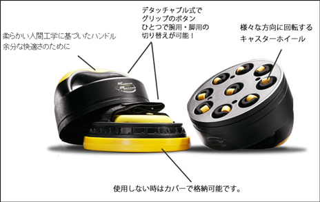 更にボタンひとつでグリップを外すことができ、膝に装着して下半身強化も可能!