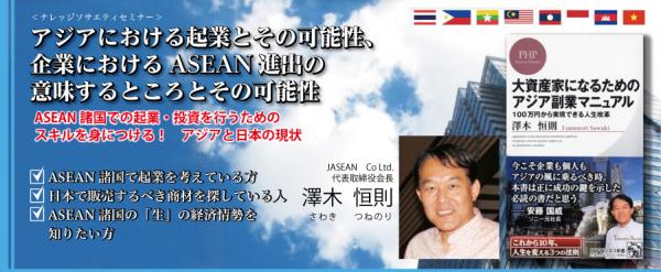 第一弾は、JASEAN代表取締役会長 澤木恒則(さわきつねのり)氏をスピーカーにセミナーを開催する。