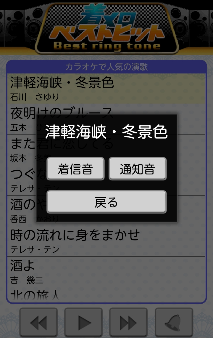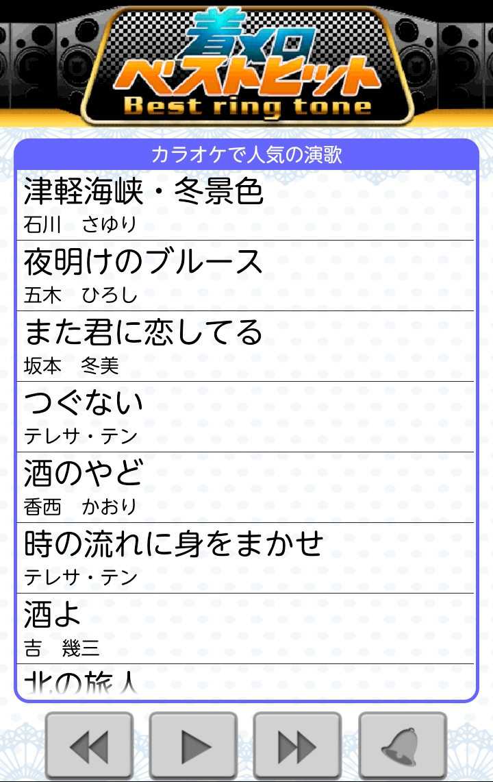 今回は、カラオケで定番の演歌を集めた「カラオケで人気の演歌」をリリース。12曲収録しており、アプリから簡単に着信音や、通知音に設定することが可能です。