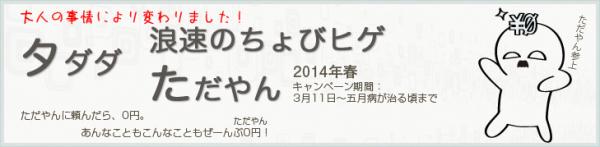 今回の「ただやん 2014春」のキャンペーン期間は、3月11日から五月病が治る頃まで。