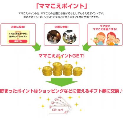 株式会社マインドシェア(東京都港区、代表取締役:今井祥雅)は、0~9歳の子どもを持つ母親を対象会員とするママ参加型サイト「ママこえ」において、ギフト券などと交換可能なポイント(ママこえポイント)を発行する新サービスを3月19日に開始いたしました。