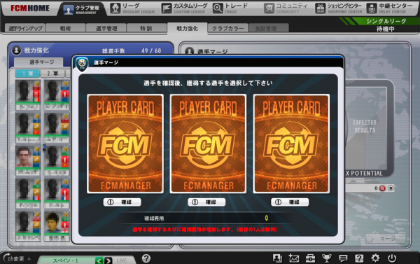 合体である「マージ」を完成させたら、カードを3択できる画面が出てきます。ここからは運次第です。果たして、キミの納得する選手は出てくるでしょうか!?
