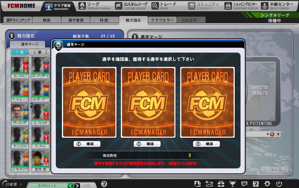 1枚選んではみたものの、「ちょっと欲しくないなぁ……」出てきた選手が気に入らなくても大丈夫です。ゴールドを払えば、もう1枚伏せてあるカードを確認することができます。さらにゴールドを払えば、3つ目の伏せカードも確認することができますので、“運任せの狙い撃ち”ではなくて、吟味したい人は確認してから選ぶといいでしょう。ご利用は計画的に!