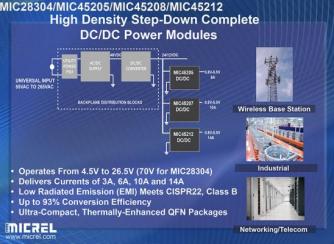 「この新世代パワーモジュールによりお客様は、設計プロセスを簡素化し、開発期間を短縮できる。これらのモジュールにより、主要部品を選択する必要がなくなり、EMI規定に対応する基板レイアウト設計が簡素化される。」と、マイクレル社LPS(Linear and Power Solutions)部門マーケティング部長のBrian Hedayati氏は述べる。「これらのモジュールは、基板面積を節約しつつ、優れたパフォーマンスを提供する。さらにモジュールは現在市場に出回っているデバイスの中で、最高の入力電圧と出力密度を提供する。」
