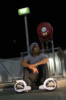 アロンは9.11の事件をきっかけに自分の人生を見つめなおし、本当にやりたいことをやらなければならないと決心し、弁護士の仕事を辞め、高校の頃から構想していたオリジナルのスケートボード「フリーライダー・スケートサイクル」の製作に取りかかります。構造やデザインなどに少しづつ改良を加え、実に10年の歳月を費やし、ついに商品化を実現しました。