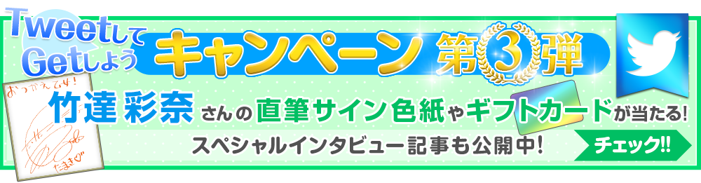 公式アカウント『@otsuoto』をフォローして指定の文言をツイートした方に、竹達彩奈さんの直筆サイン色紙を2 名様に、Google Play ギフトカード3000 円分とApp Store ギフトカード3000 円分を各5 名様にプレゼントします。